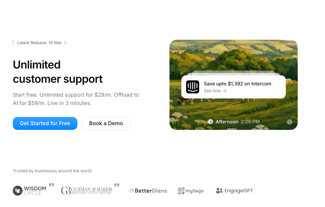 Intercom is one of the most feature-rich customer support platforms for SaaS companies, especially those running product-led growth. It combines live chat, automation, onboarding, and outbound messaging in a single system, but pricing increases quickly as usage scales.